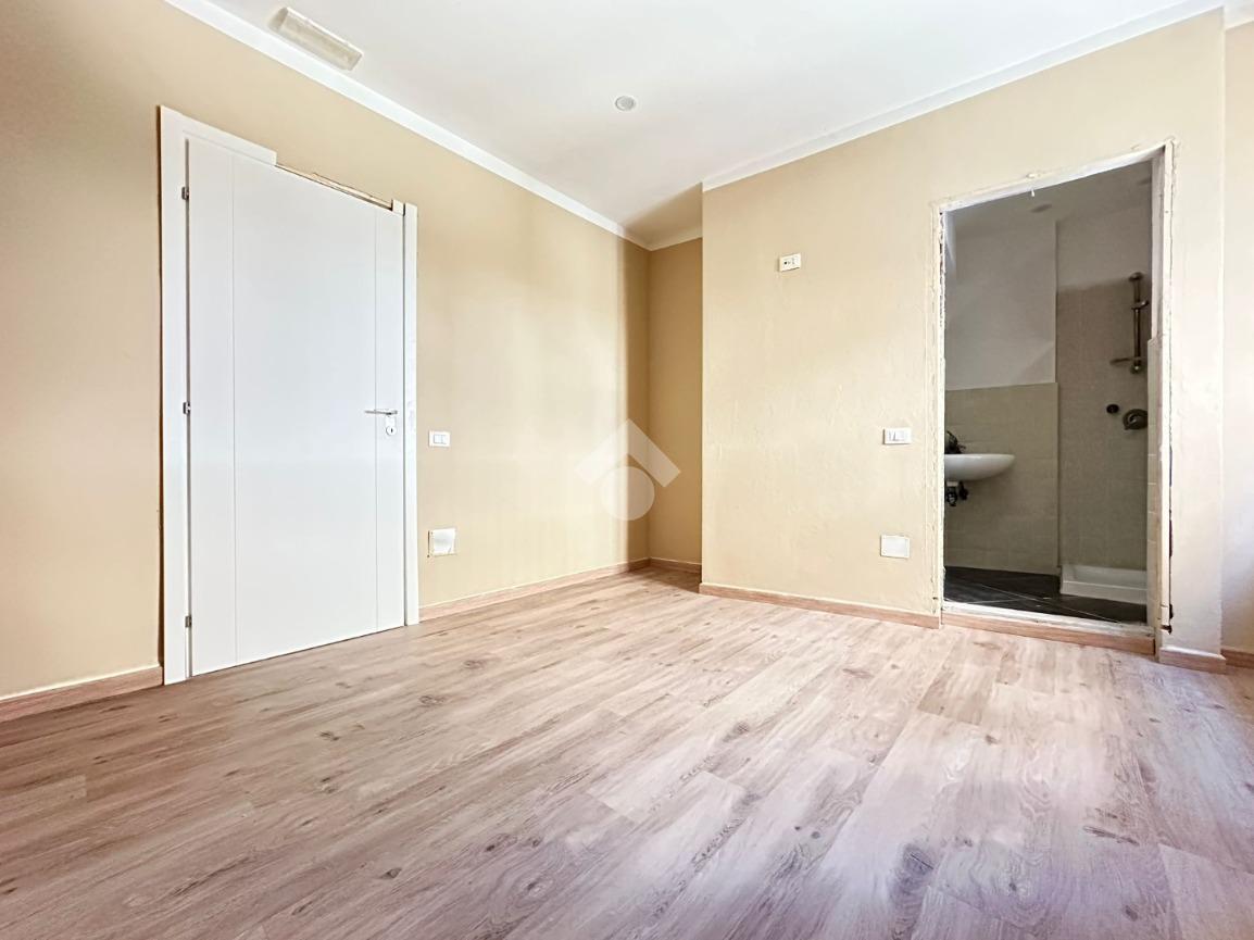 La seconda unità immobiliare è un bilocale con zona giorno open space, camera da letto e bagno con finestra e box doccia.