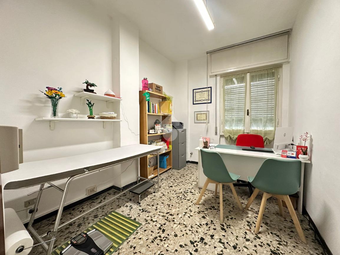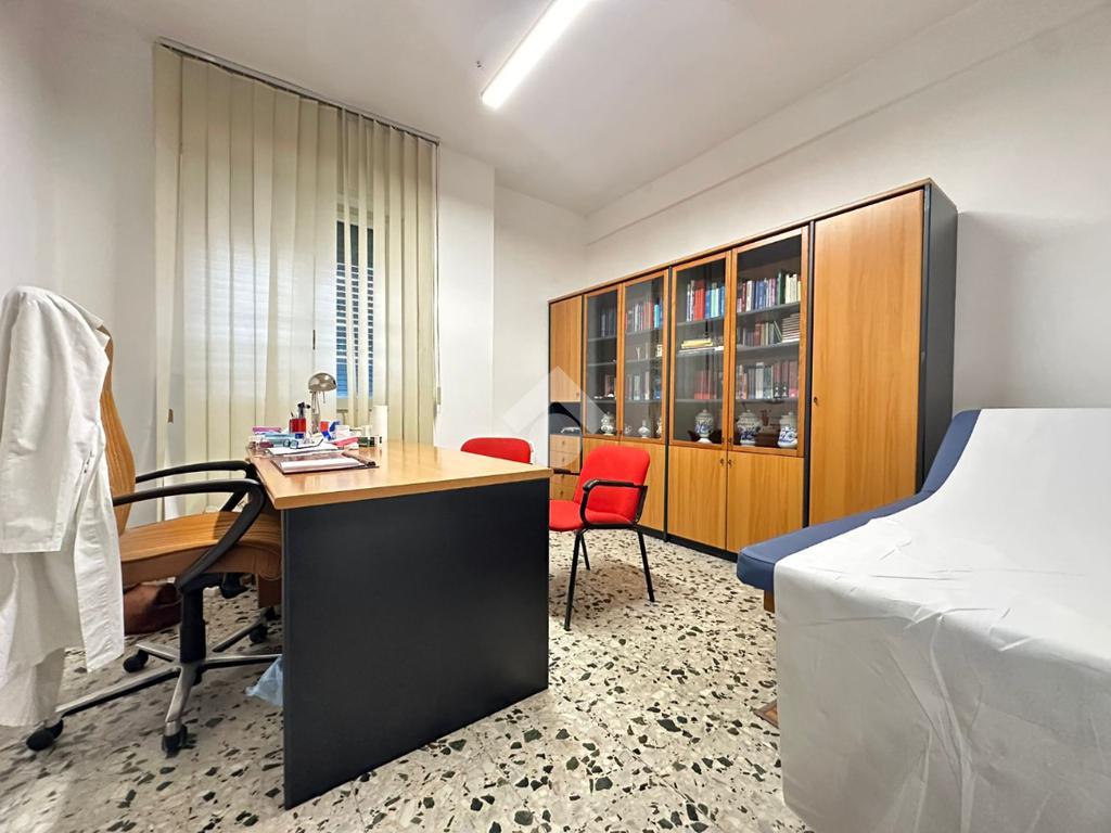 Attualmente adibito a studio medico e affittato con regolare contratto, l'appartamento offre una disposizione versatile con cinque locali, perfetta per chi cerca una prima casa spaziosa o un'opportunità di investimento.