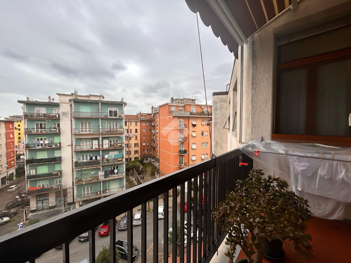 Situato all'ultimo piano di un edificio costruito nel 1971, l'immobile di ampia metratura offre una disposizione interna di quattro locali.