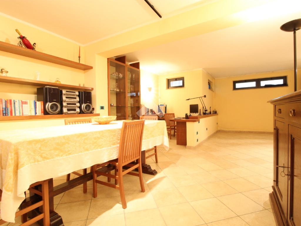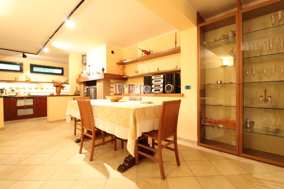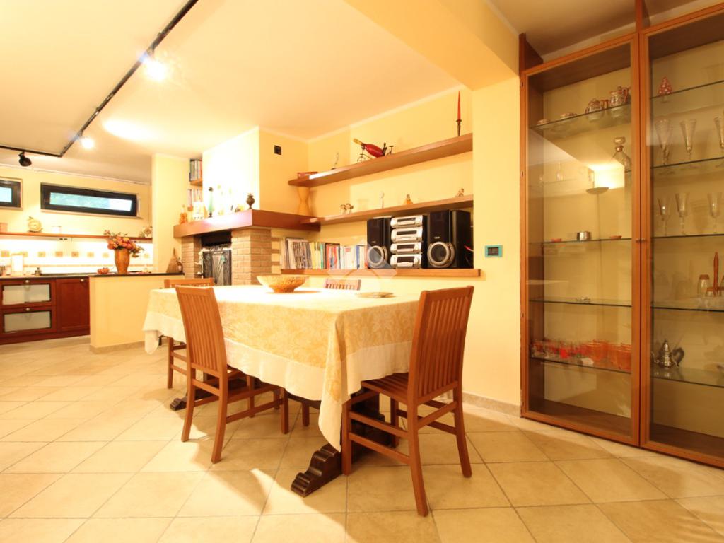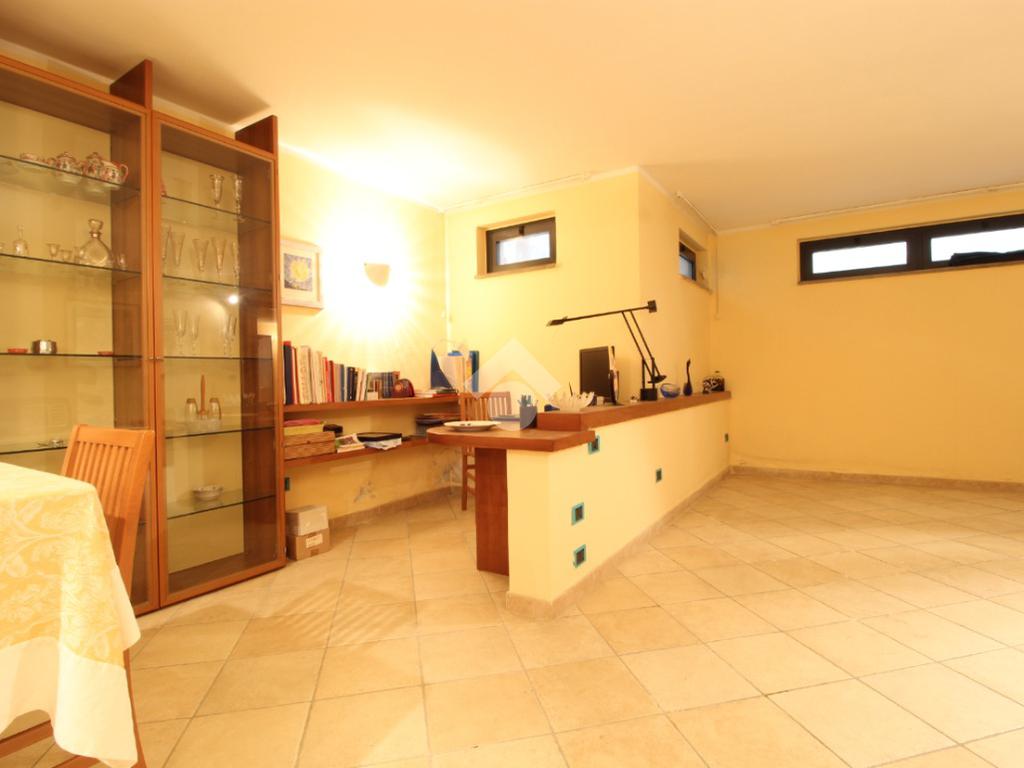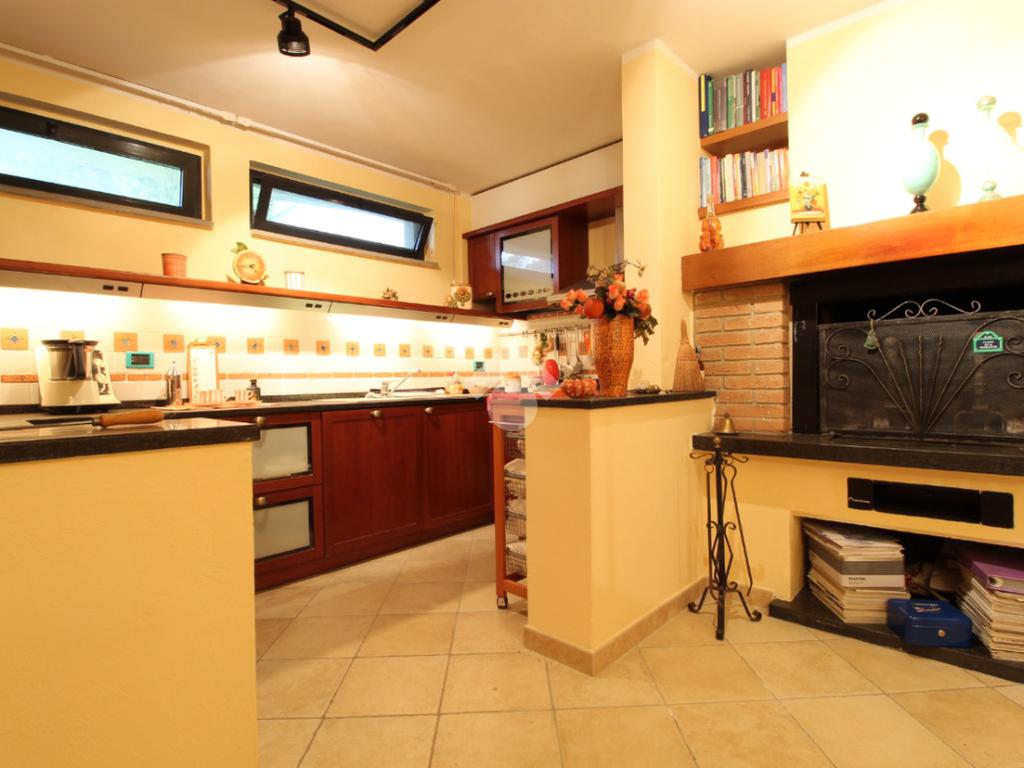 Al piano terra, troverete un garage, attualmente adibito a cantina, con accesso diretto alla grande taverna che è il cuore della casa, con un accogliente caminetto, cucina attrezzata, tavolo da pranzo, studiolo e bagno.